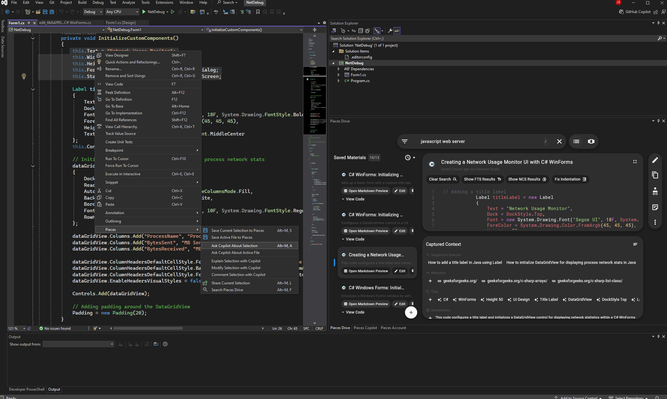 The Pieces Copilot allows you to generate intelligent code comments, access AI Quick Actions, and ask variable-context coding questions without leaving Visual Studio Code.